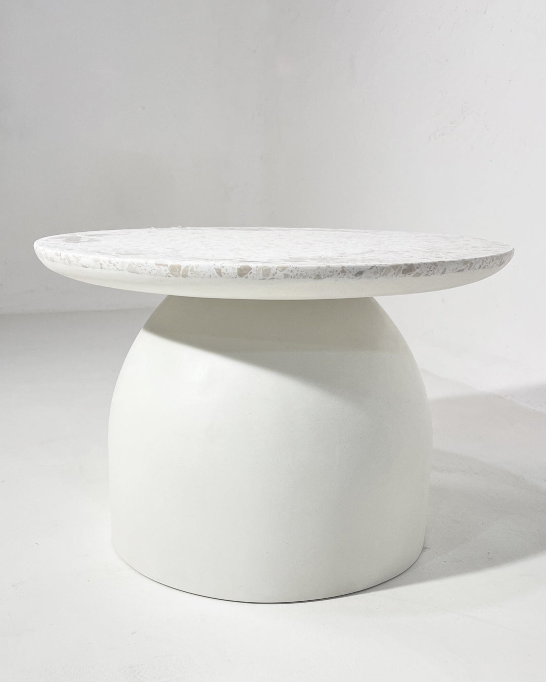 TerraMix Solum draws inspiration from geological forms — grounded, raw, and elegant. The conical micro-concrete leg provides a sculptural base for the terrazzo top, creating a harmonious blend of weight and delicacy. A true conversation piece for contemporary interiors.